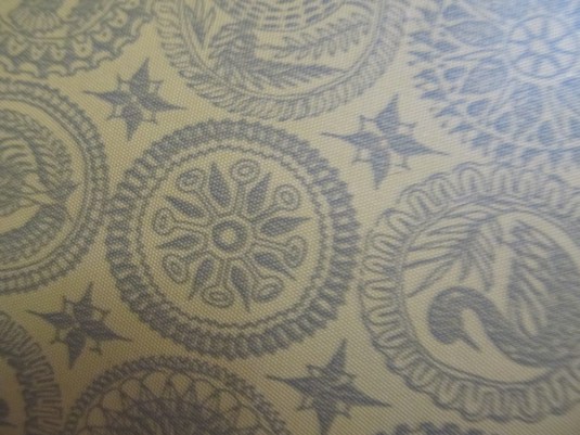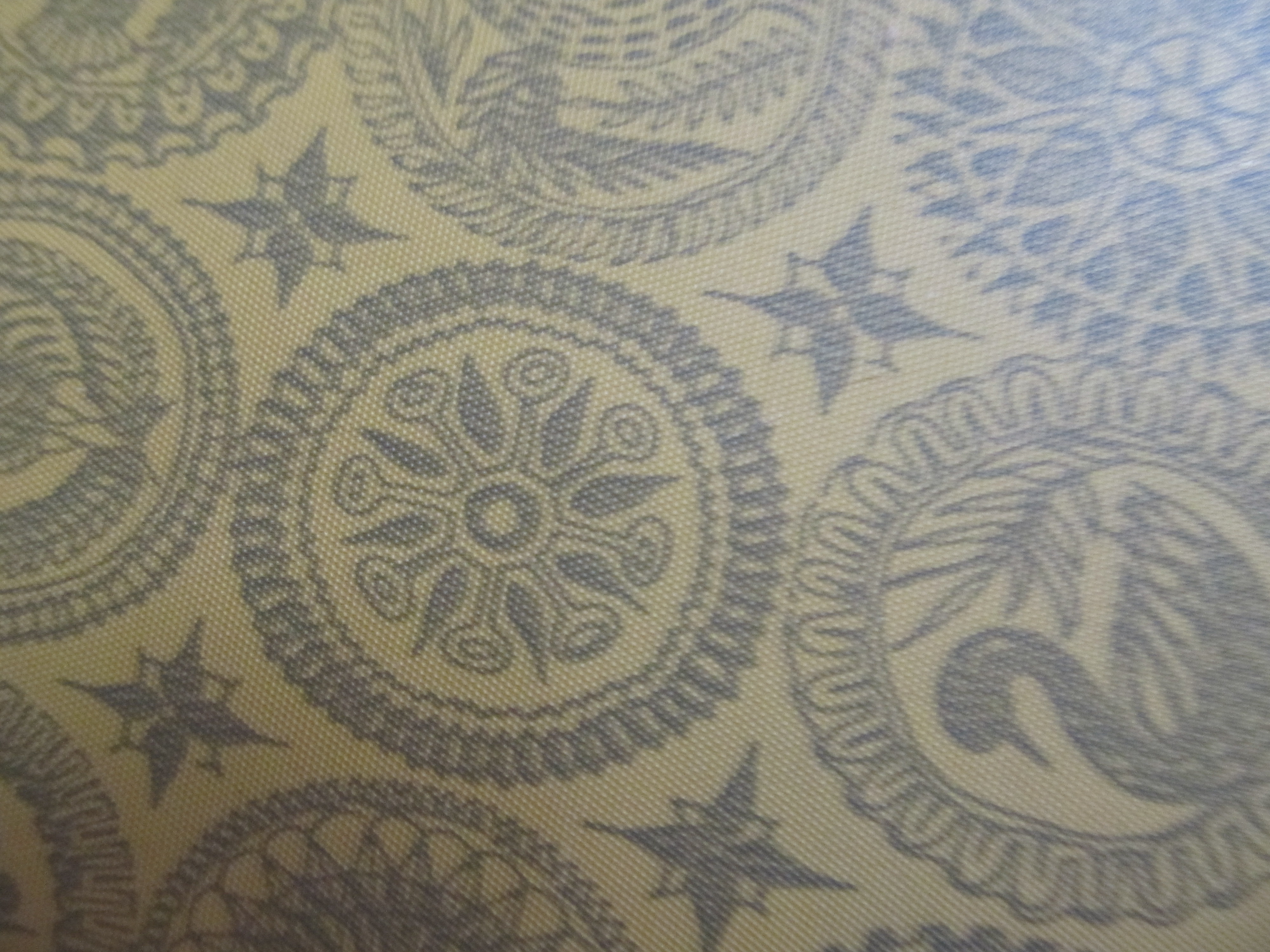 What do we have in our house with this print? I had to search around to figure it out.  It turns out it’s a chair in our computer room.  When I looked closer I saw not only swans, but buffalos, eagles, roosters and flowers.  I never liked the chair before.  Now I find it interesting.