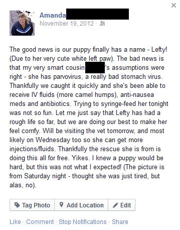 Lefty - Facebook Post - Parvo