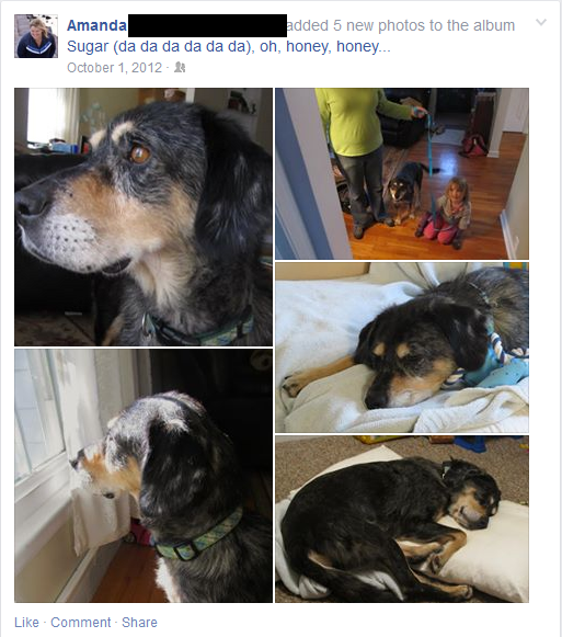 First was Sugar, whom I adopted from a shelter that was crazy-full of dogs: