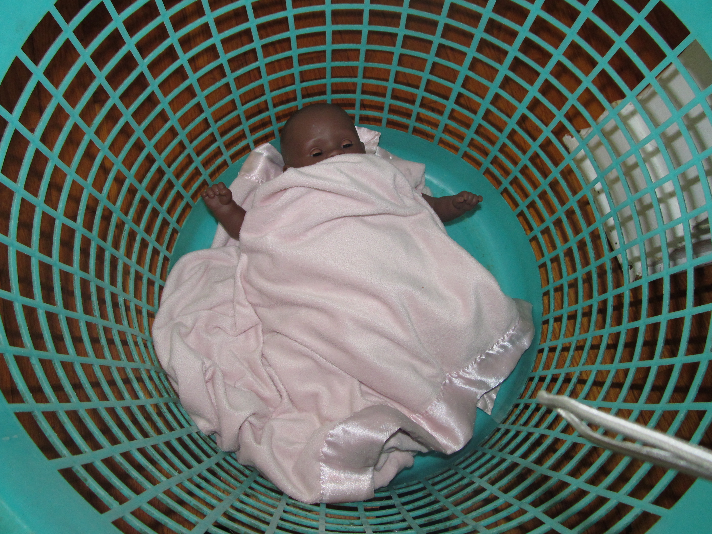 Baby in a basket (don't worry, it's not a real baby)